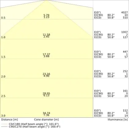 ![]() De kleurcode is een combinatie van de kleurweergave (CRI) en lichtkleur (Kelvin). Het eerste getal is de kleurweergave (1 = zeer slechte kleurweergave, 9 = maximale kleurechtheid). Het tweede en derde cijfer betreft de lichtkleur. Een lamp met kleurcode 830 heeft bijvoorbeeld een goede kleurweergave en straalt een warm wit licht uit (3000K), waar een lamp met de kleurcode 940 een uitstekende CRI heeft en een koel wit licht (4000K) uitstraalt. |