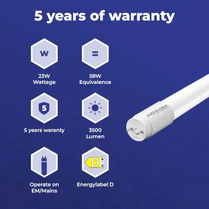 | Fabrikantnaam | Noxion Avant LEDtube T8 Extreme UO (EM/Direct) 1500 23W/830 (58W eqv.) with Starter | |